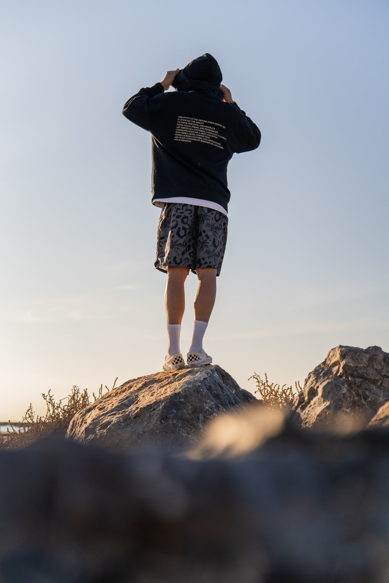 Il modello è alto 1.80 e indossa una taglia L.